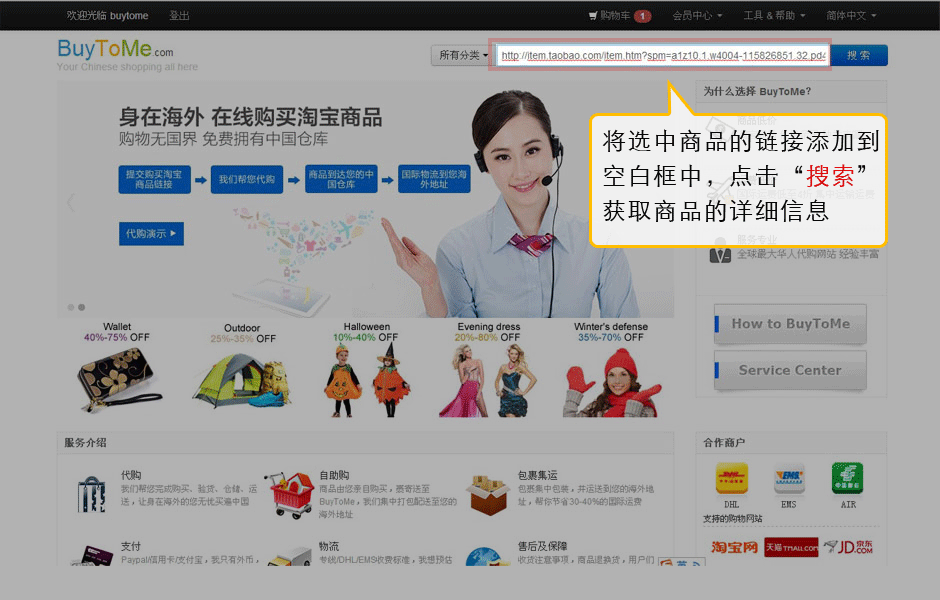 google.comwww.buytome.com 专业服务海外华人的淘宝代购网站,一站式购买淘宝taobao、拍拍、当当等中国商品。服务费低,集中运输让运费省上加省,是新加坡代购,马来西亚代购及其他海外华人代购中国的首选代购网。